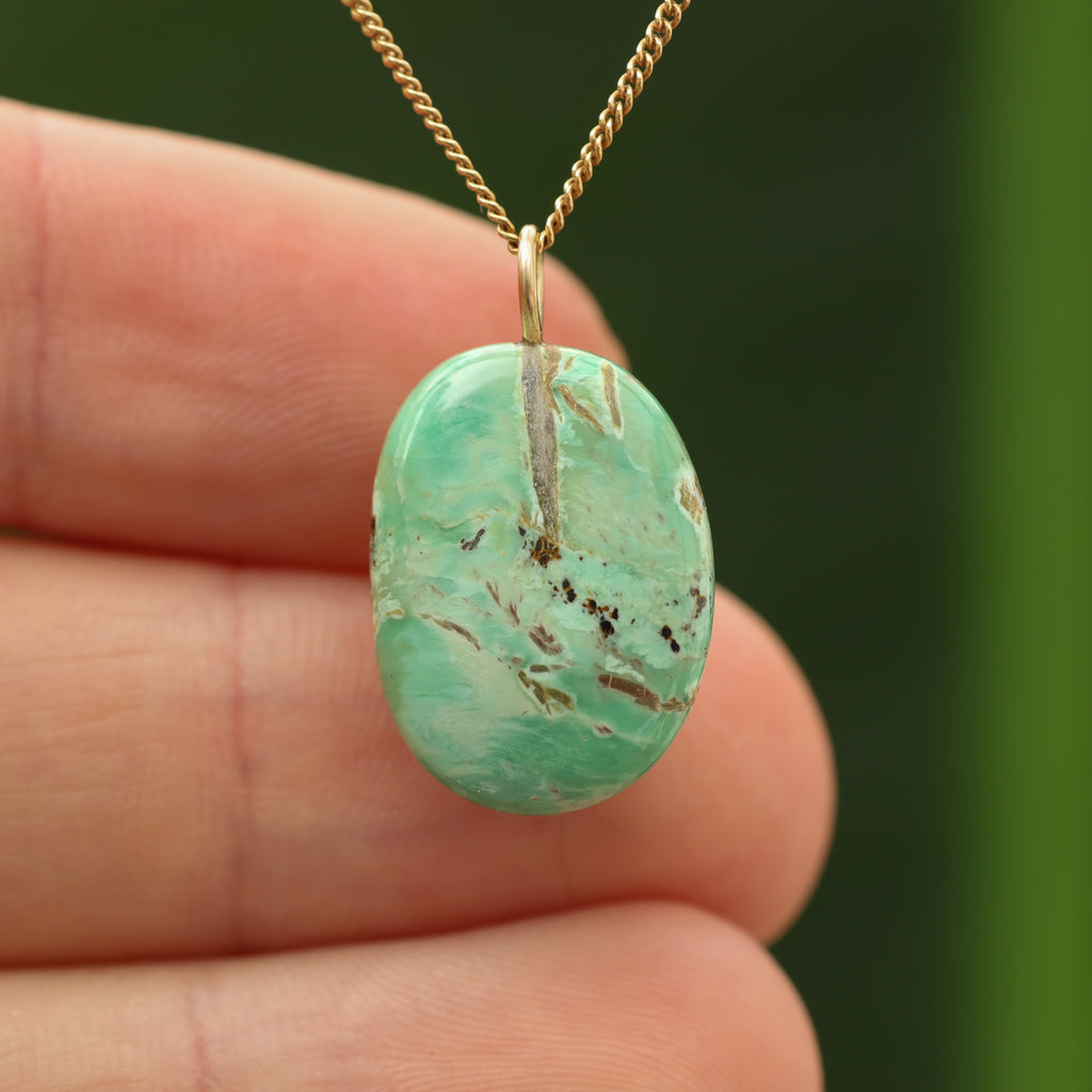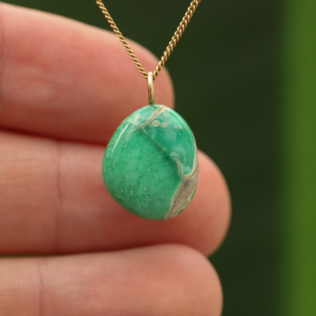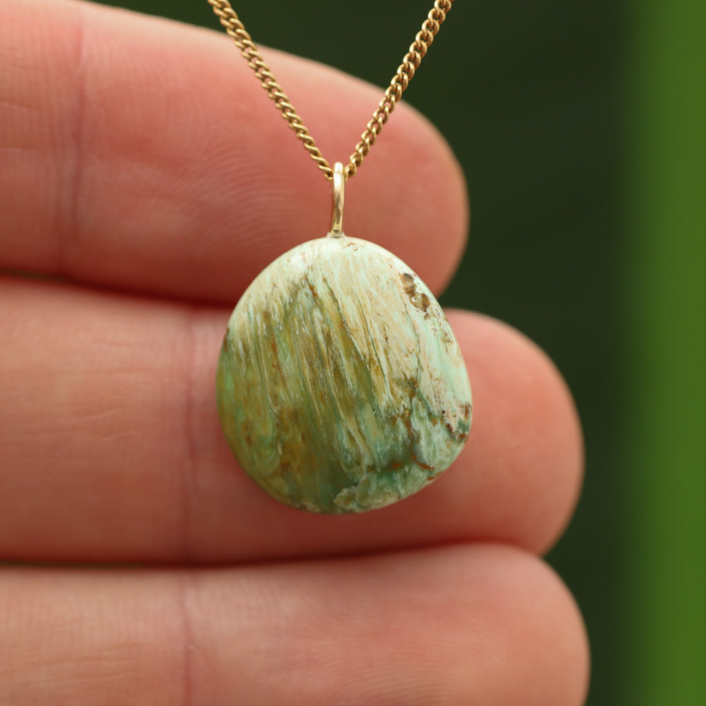 Tijdens onze inkoopreizen bekijken we elke steen stuk voor stuk en selecteren we zorgvuldig de mooiste, kwalitatieve stukken met unieke vormen. Alleen de meest bijzondere stenen reizen met ons mee naar huis, om uiteindelijk verwerkt te worden tot een unieke hanger.