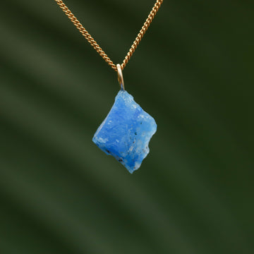 Afghanite can be recognized by its bright blue to whitish shades. This gemstone was discovered in 1968 in the famous Lapis Lazuli mine in Sar-e-Sang, Badakhshan.