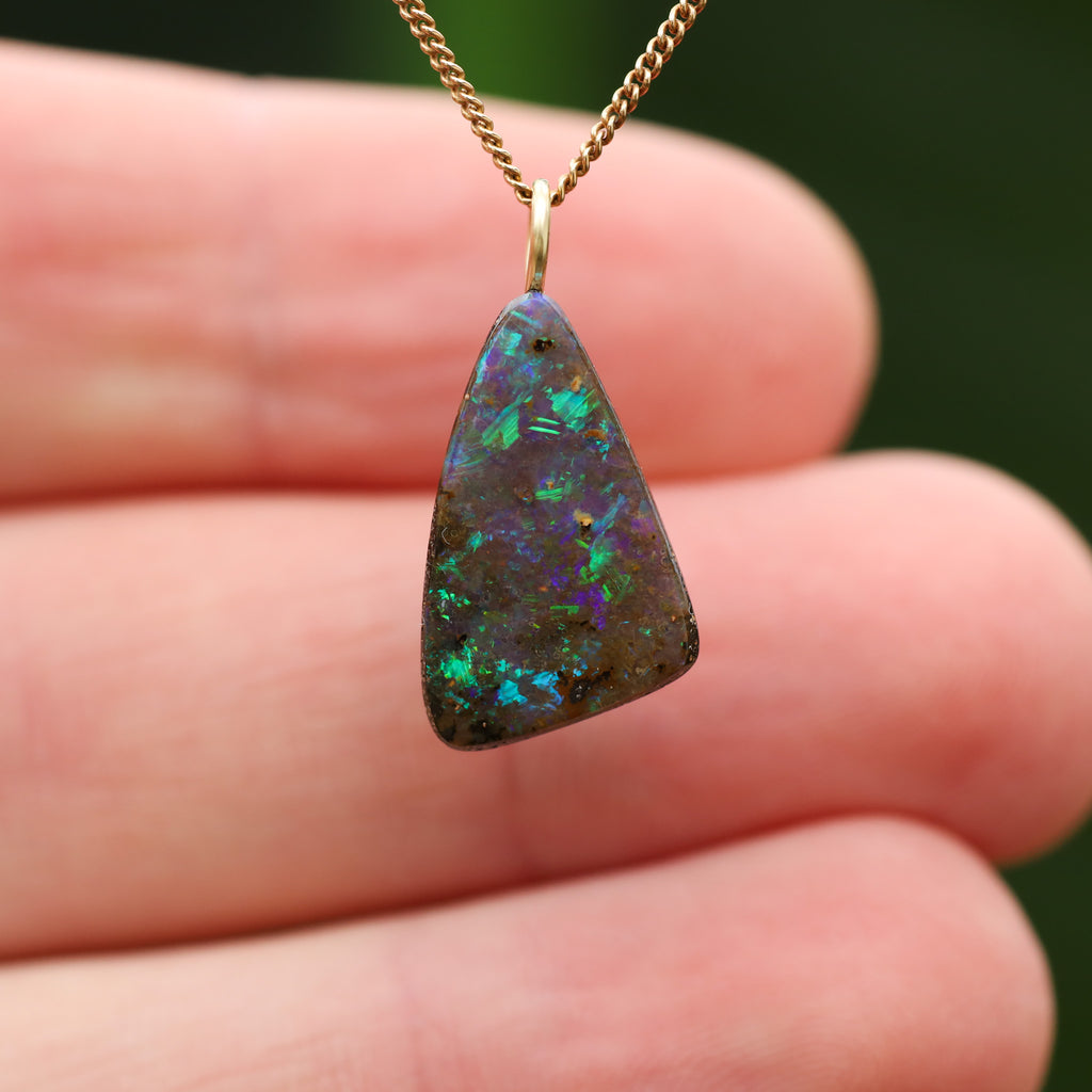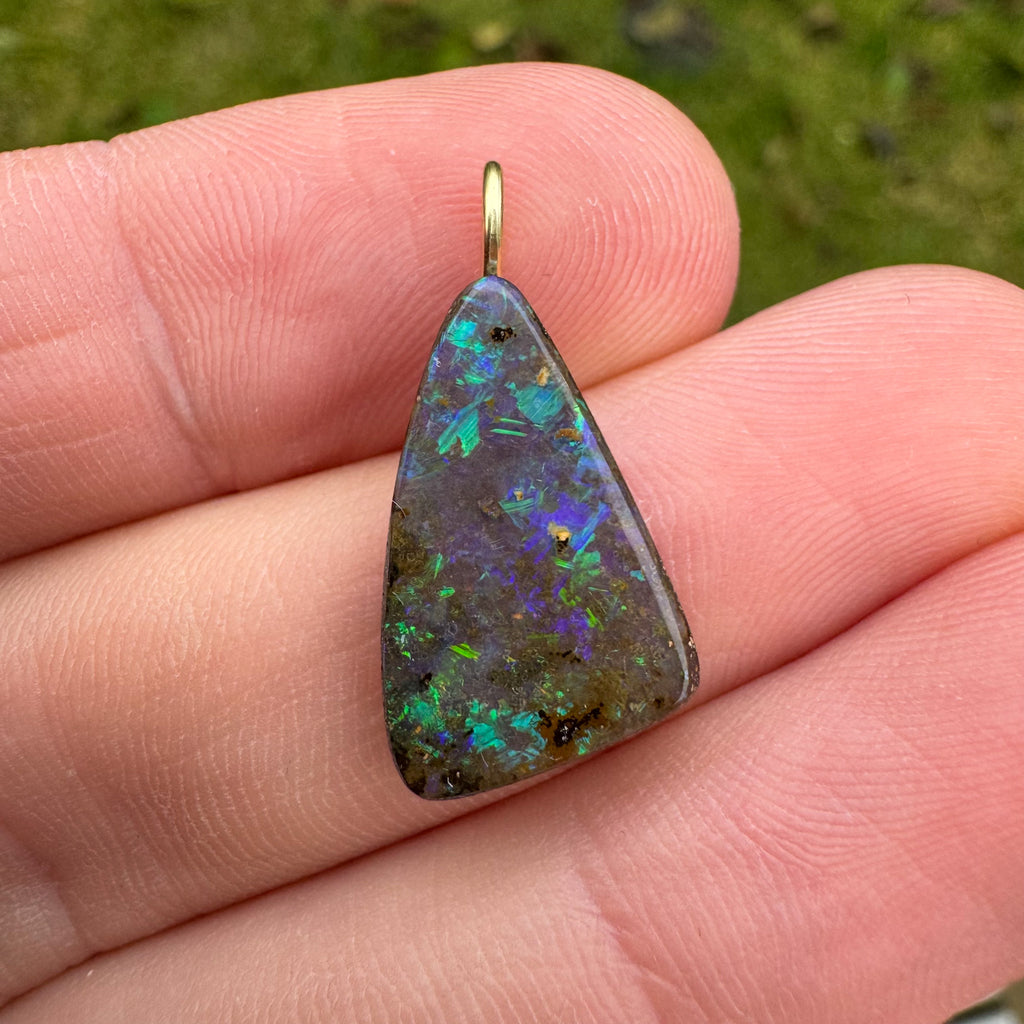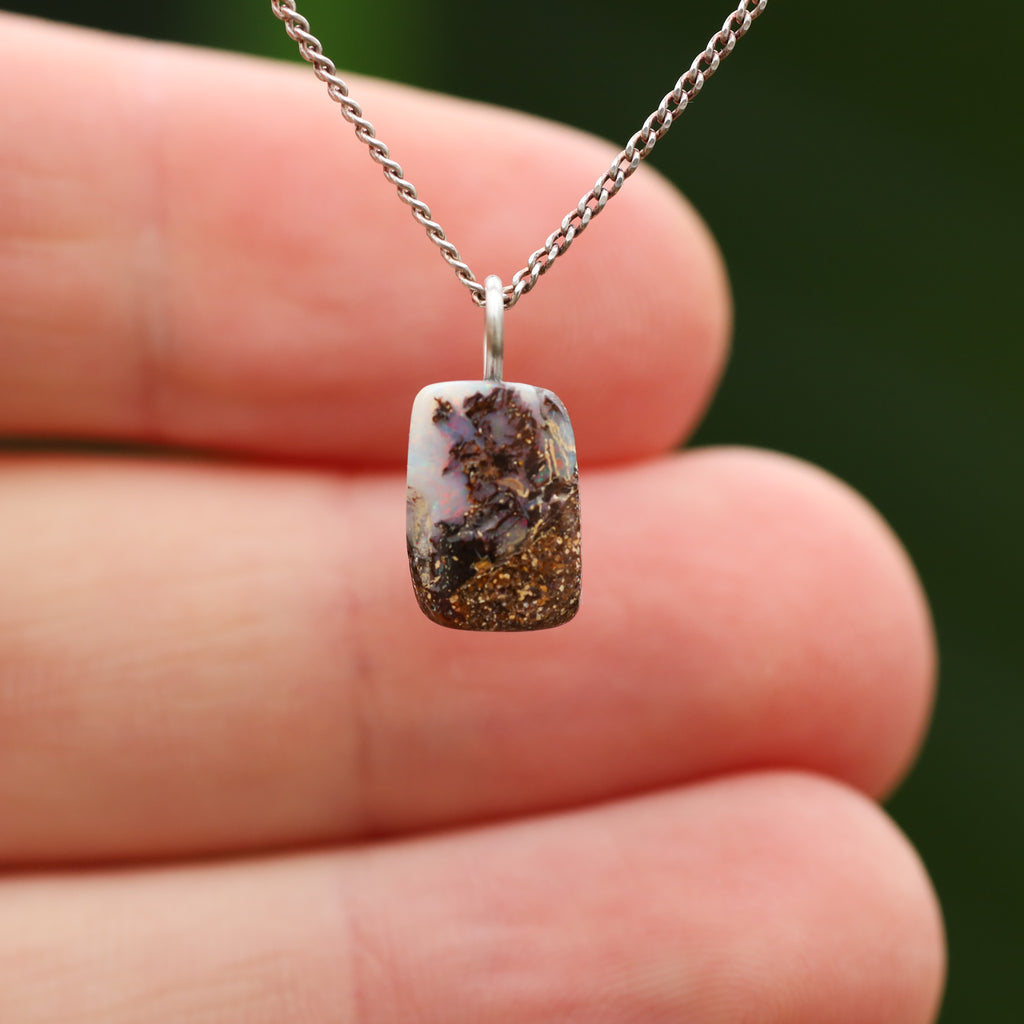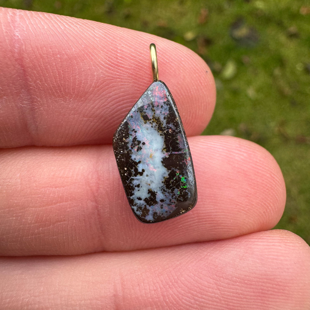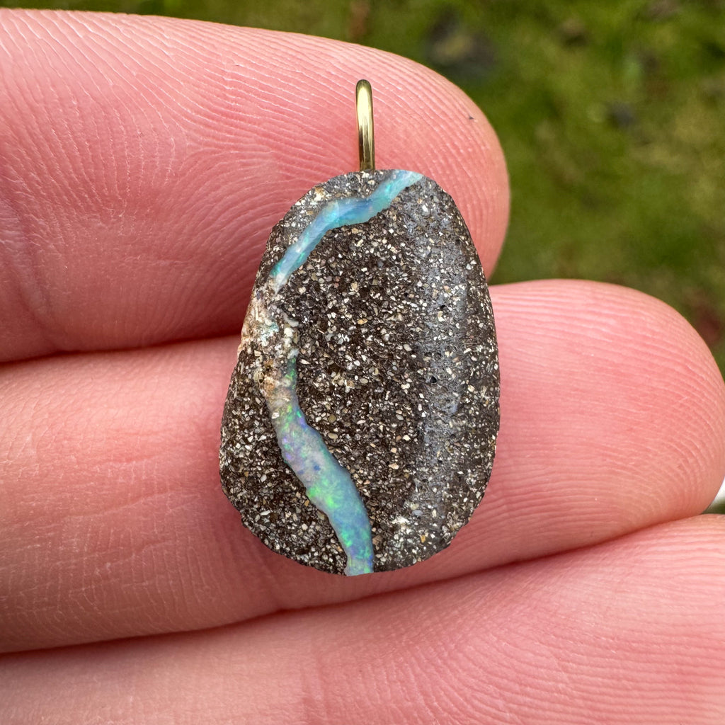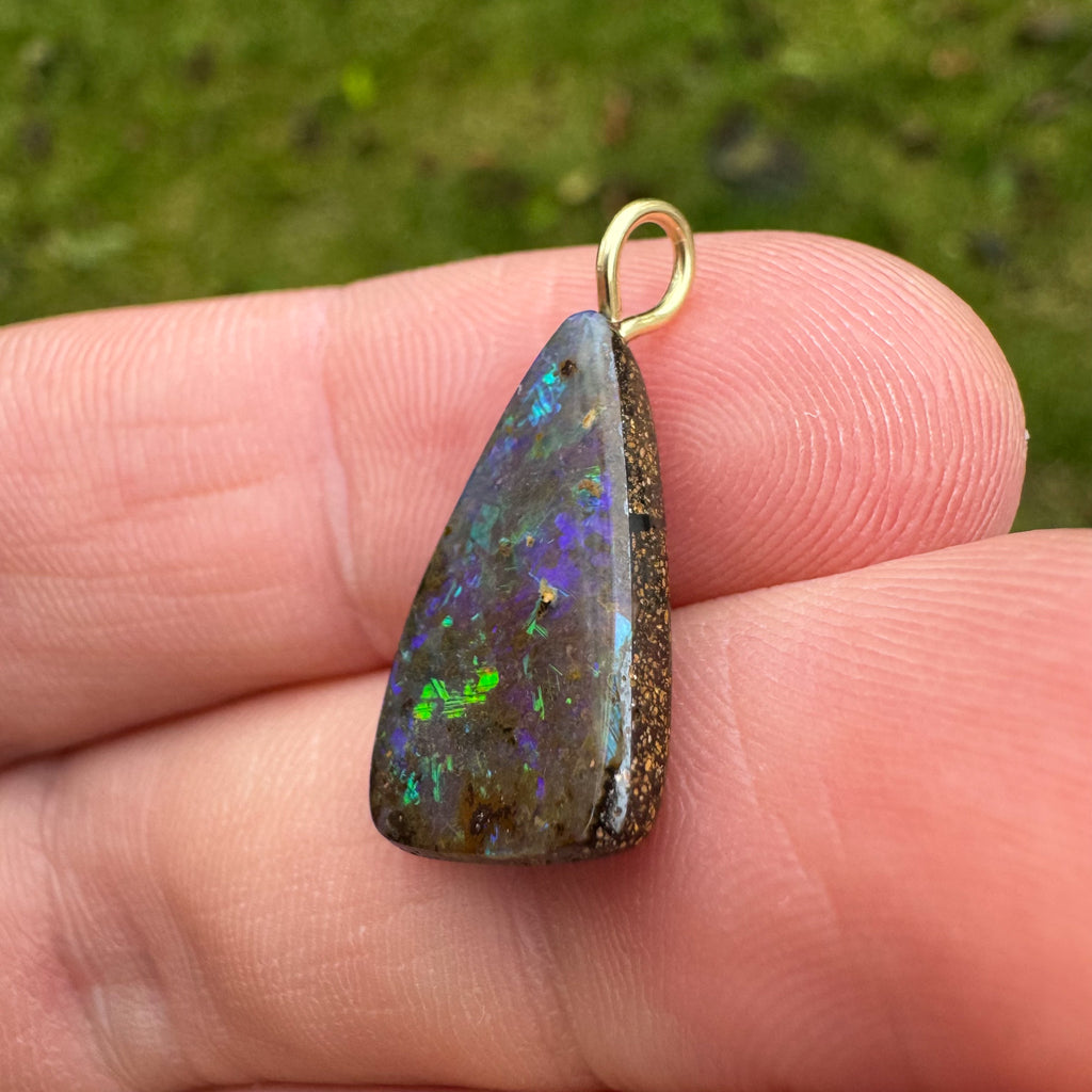 Une opale boulder est un type rare d'opale trouvée dans des formations de fer spécifiques (rochers) dans le Queensland, en Australie. Ils ont souvent des paillettes de différentes couleurs.