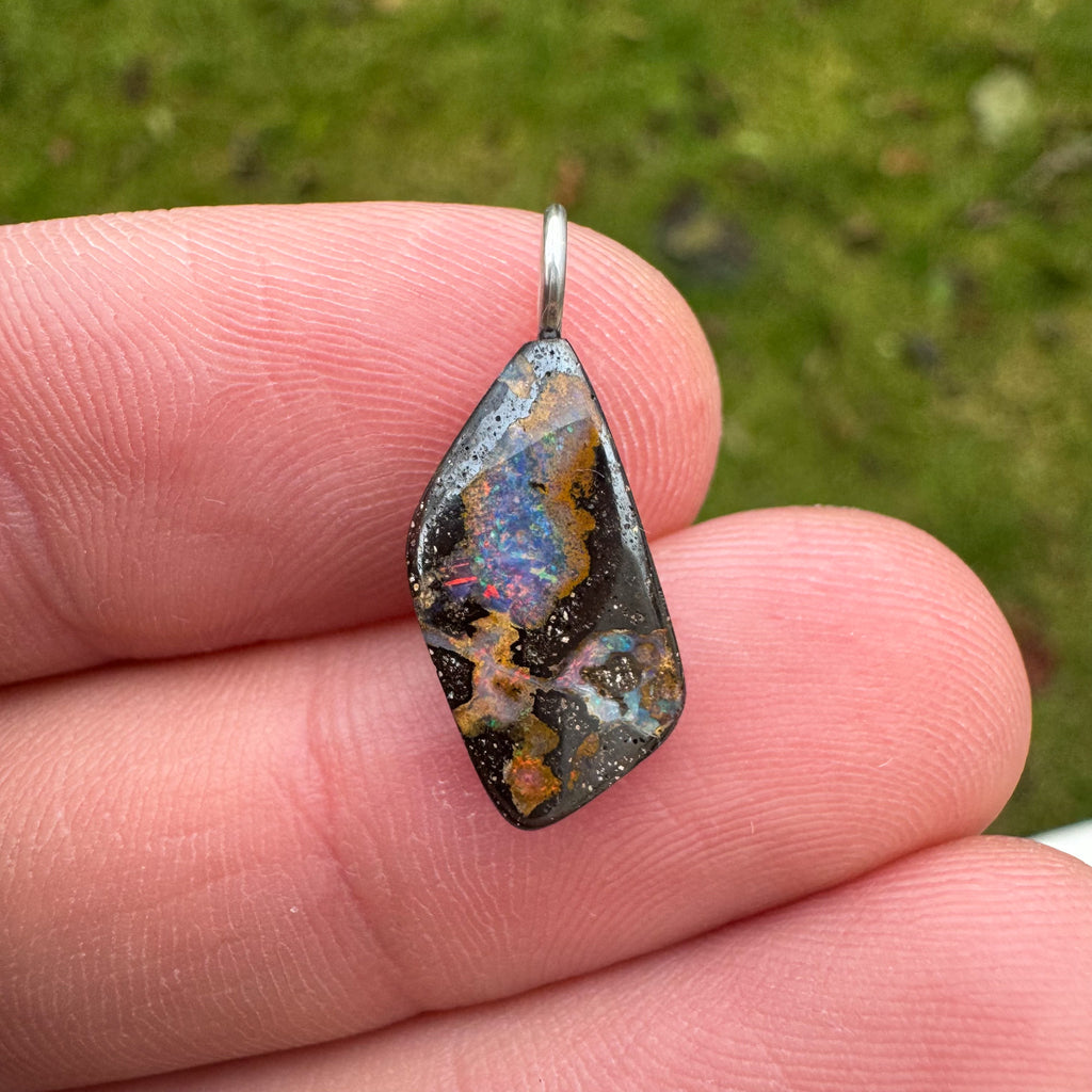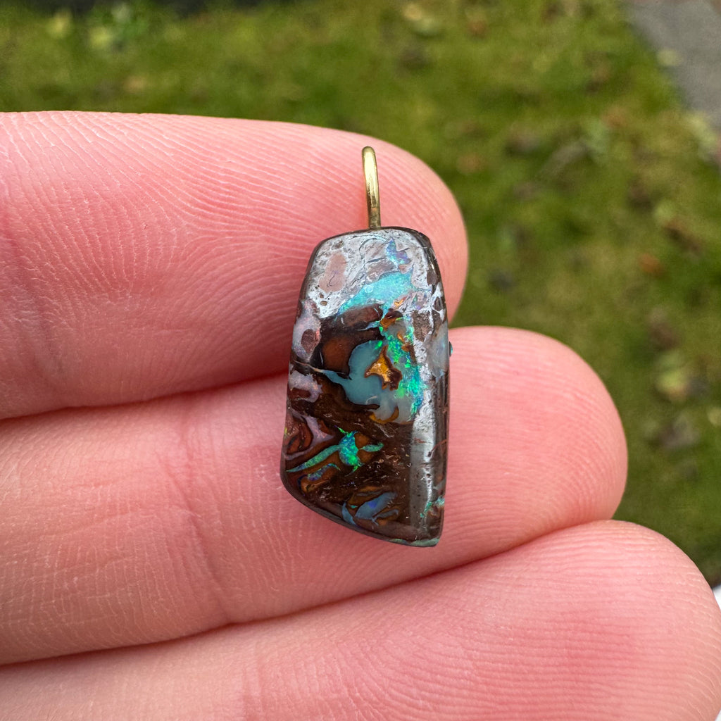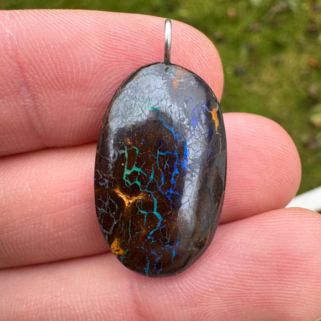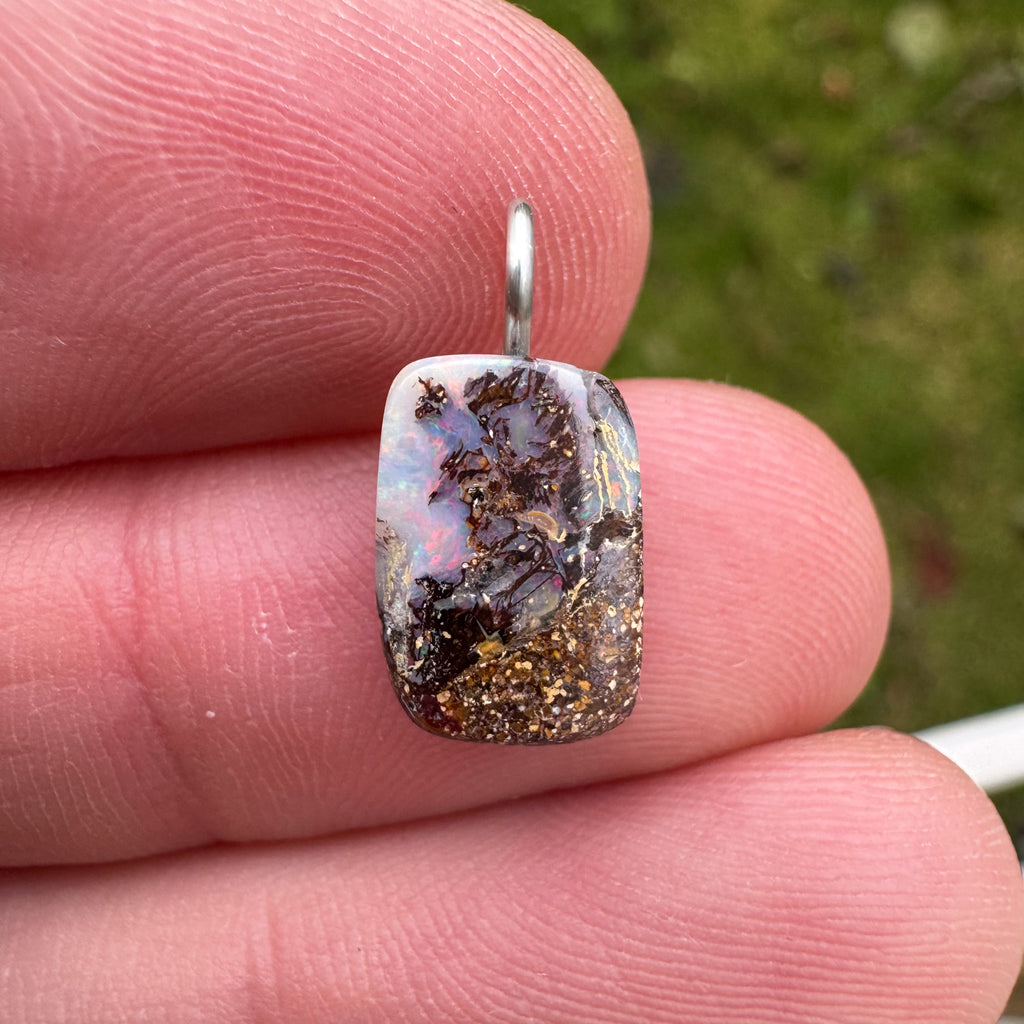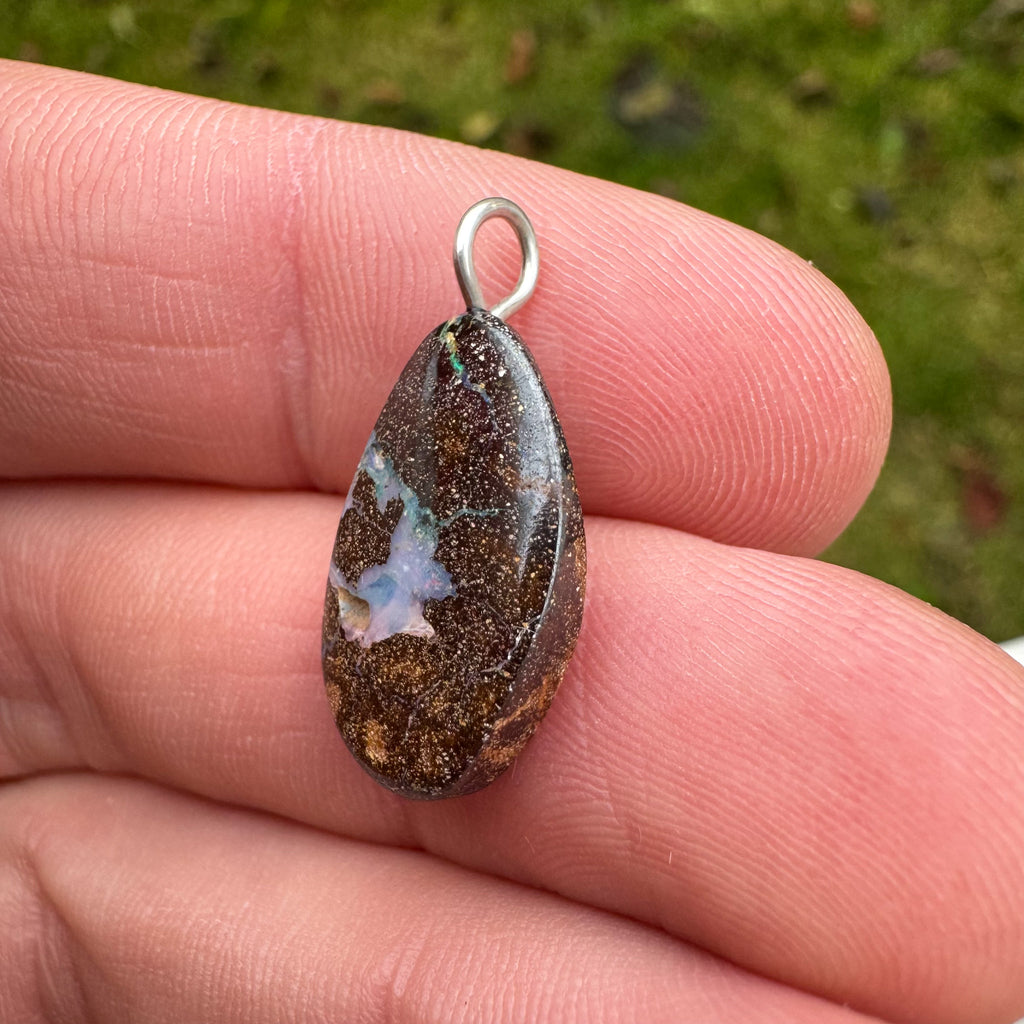 Une opale boulder est un type rare d'opale trouvée dans des formations de fer spécifiques (rochers) dans le Queensland, en Australie. Ils ont souvent des paillettes de différentes couleurs.