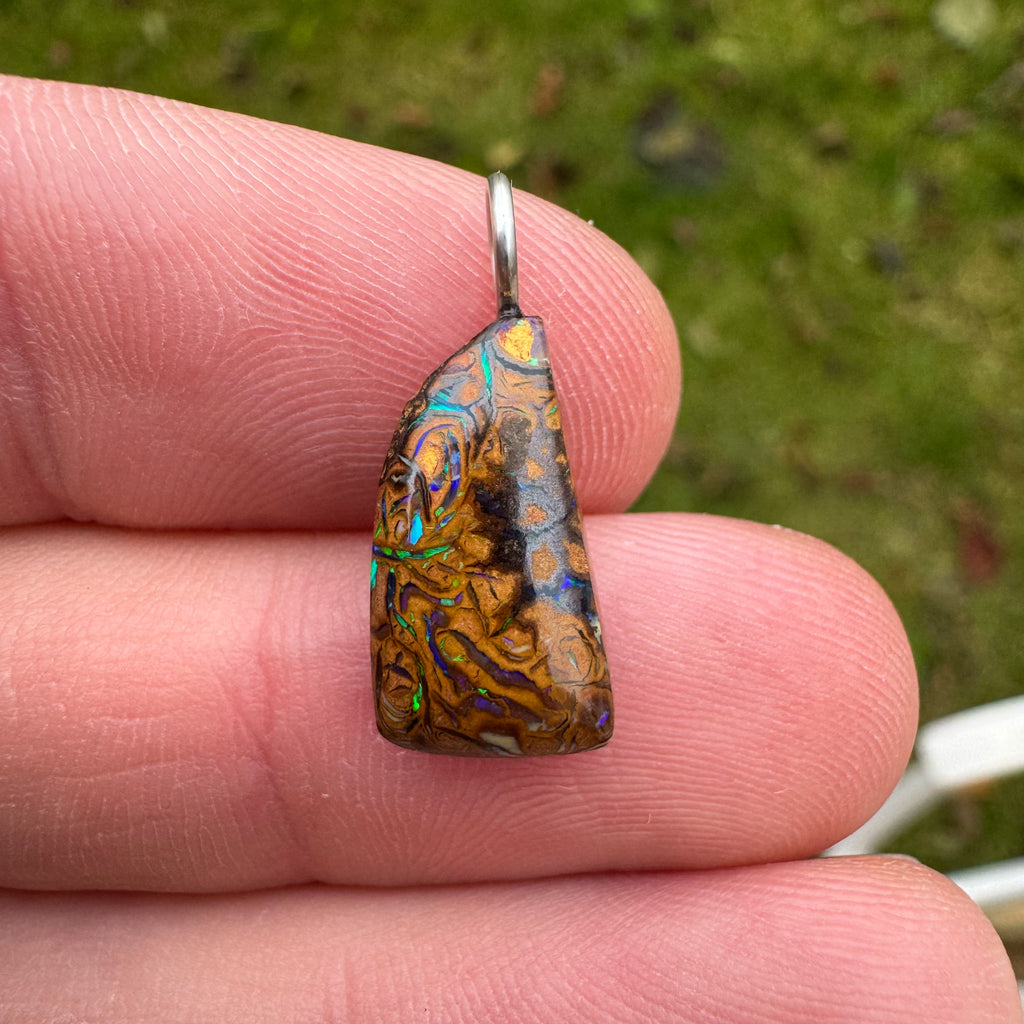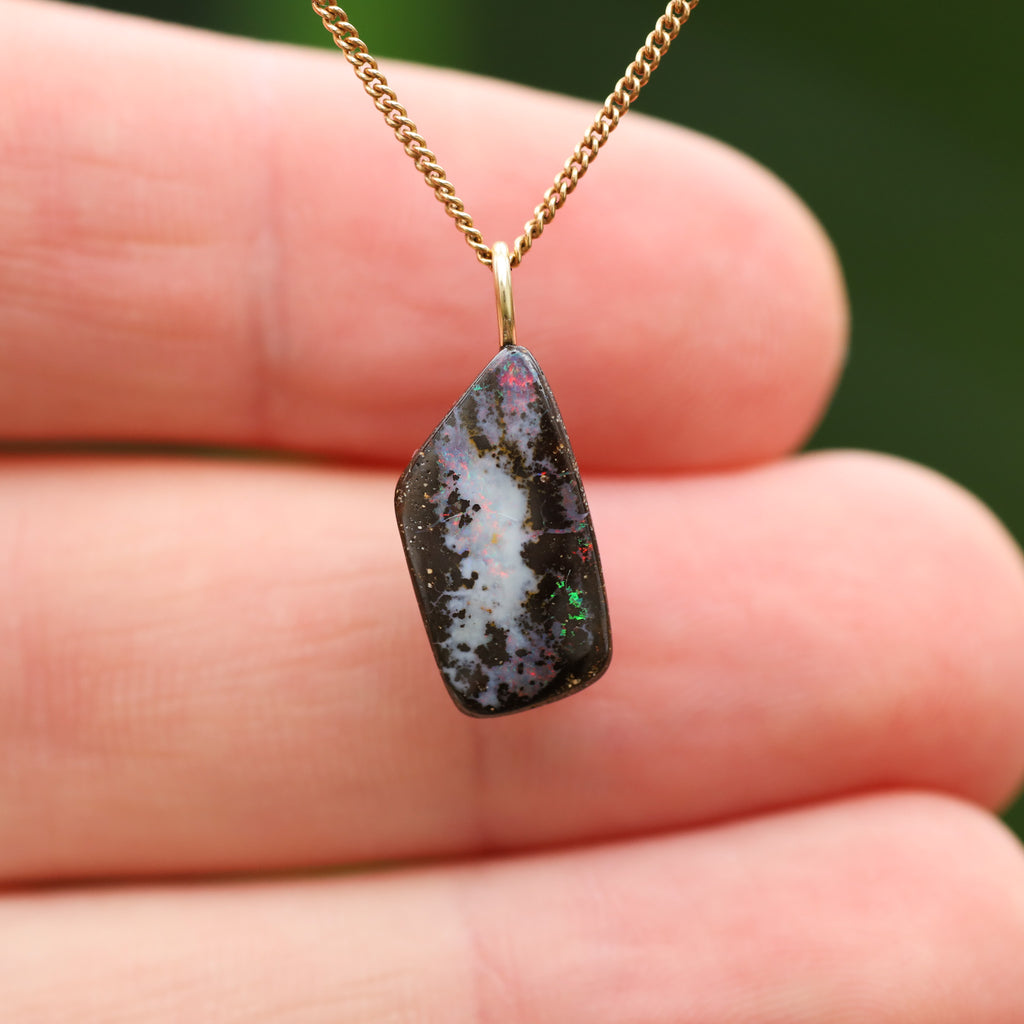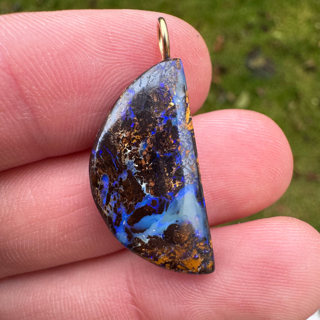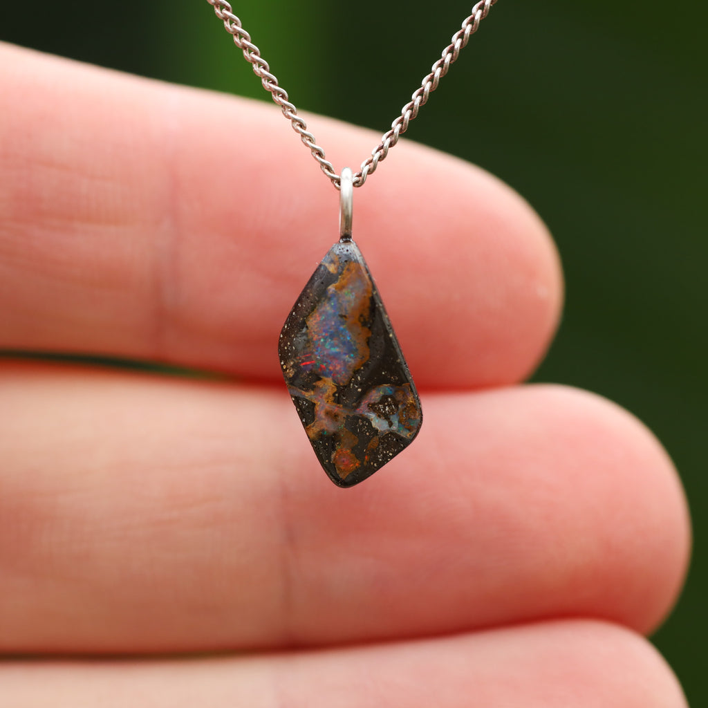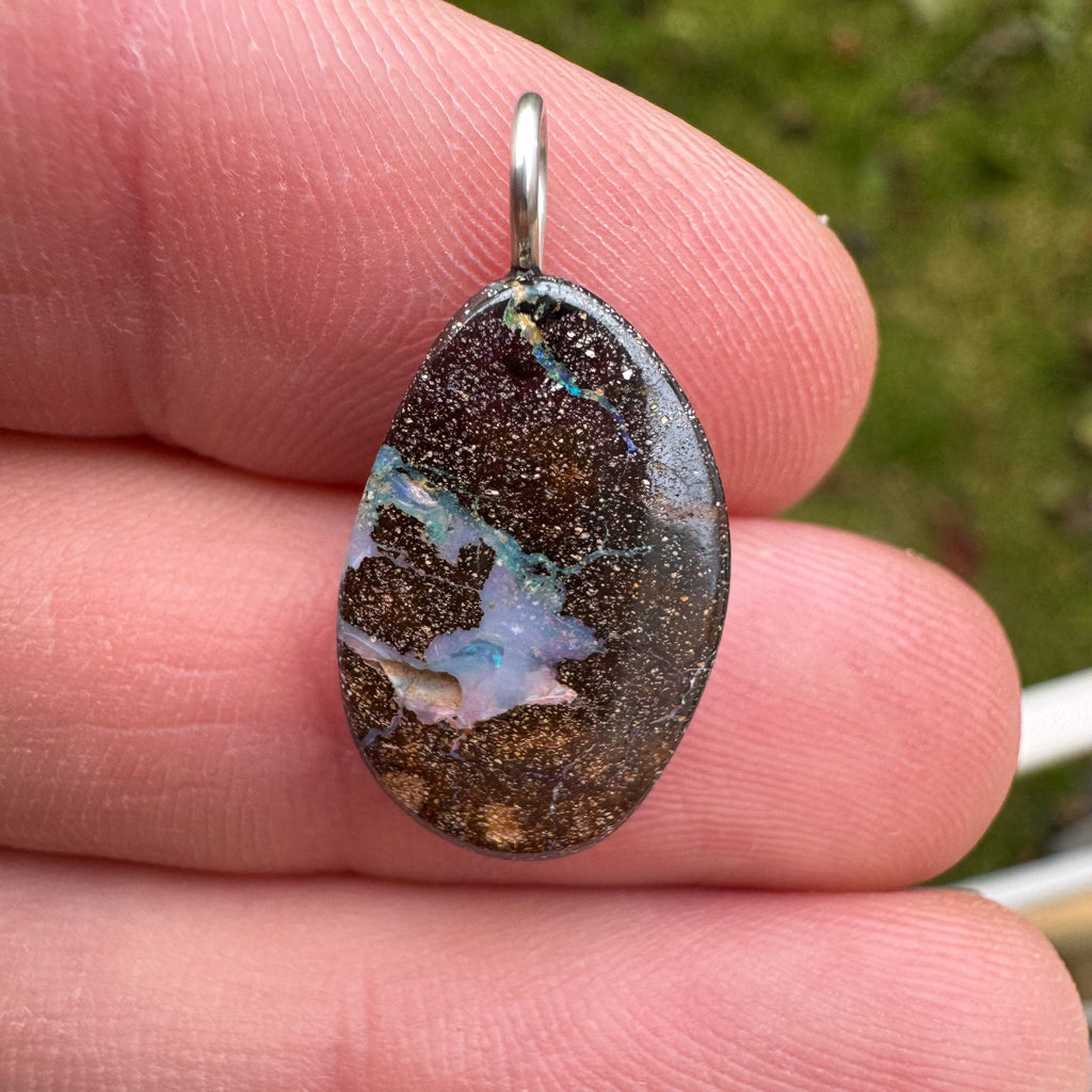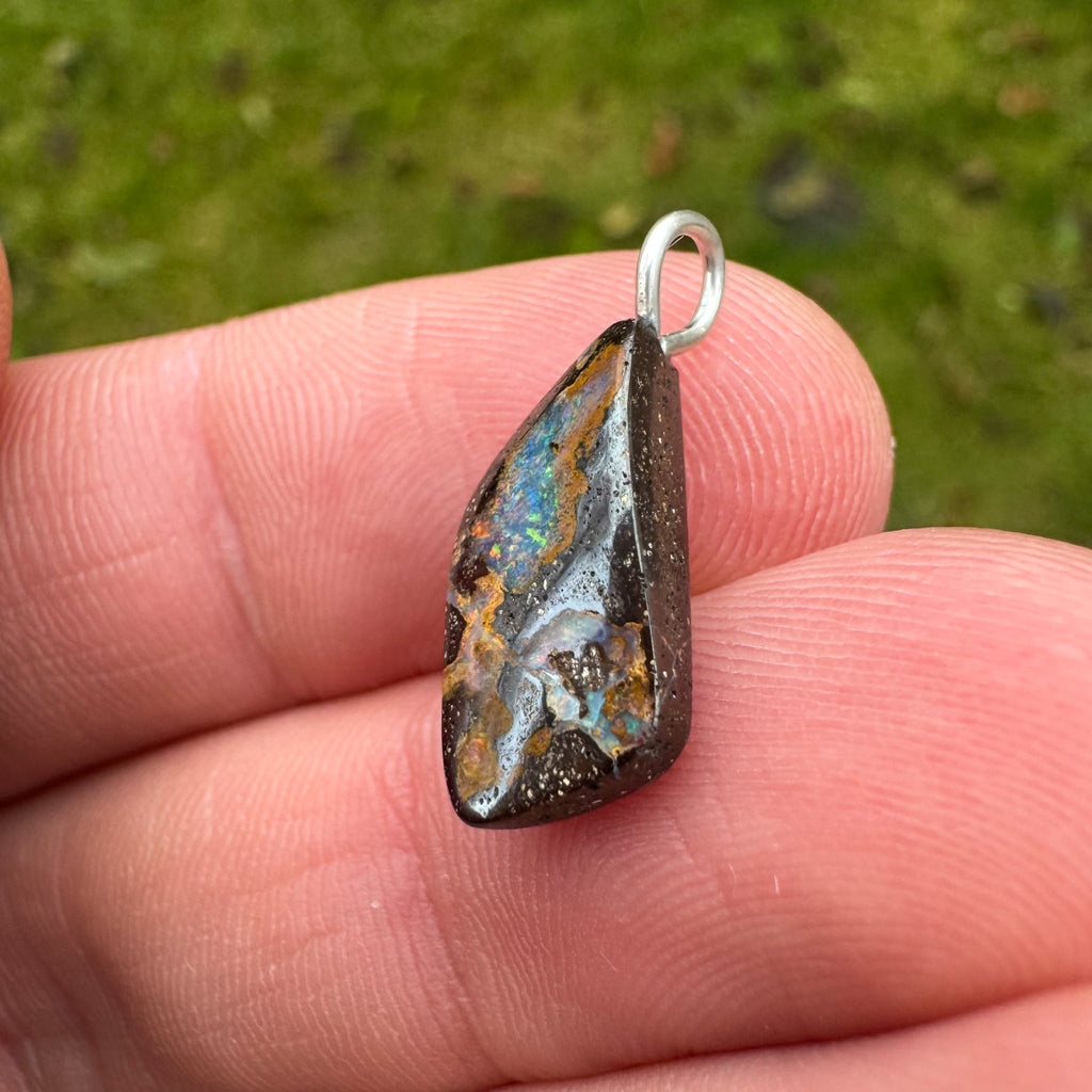 Une opale boulder est un type rare d'opale trouvée dans des formations de fer spécifiques (rochers) dans le Queensland, en Australie. Ils ont souvent des paillettes de différentes couleurs.