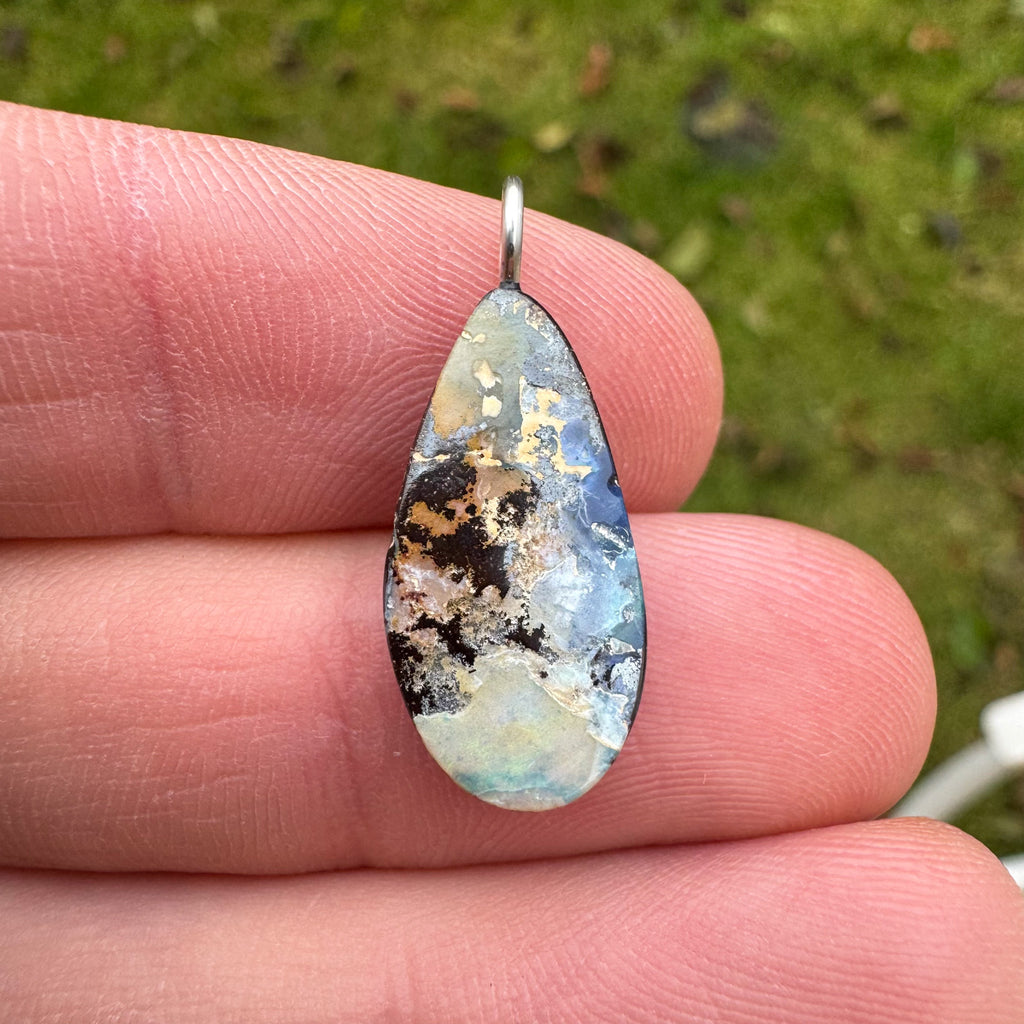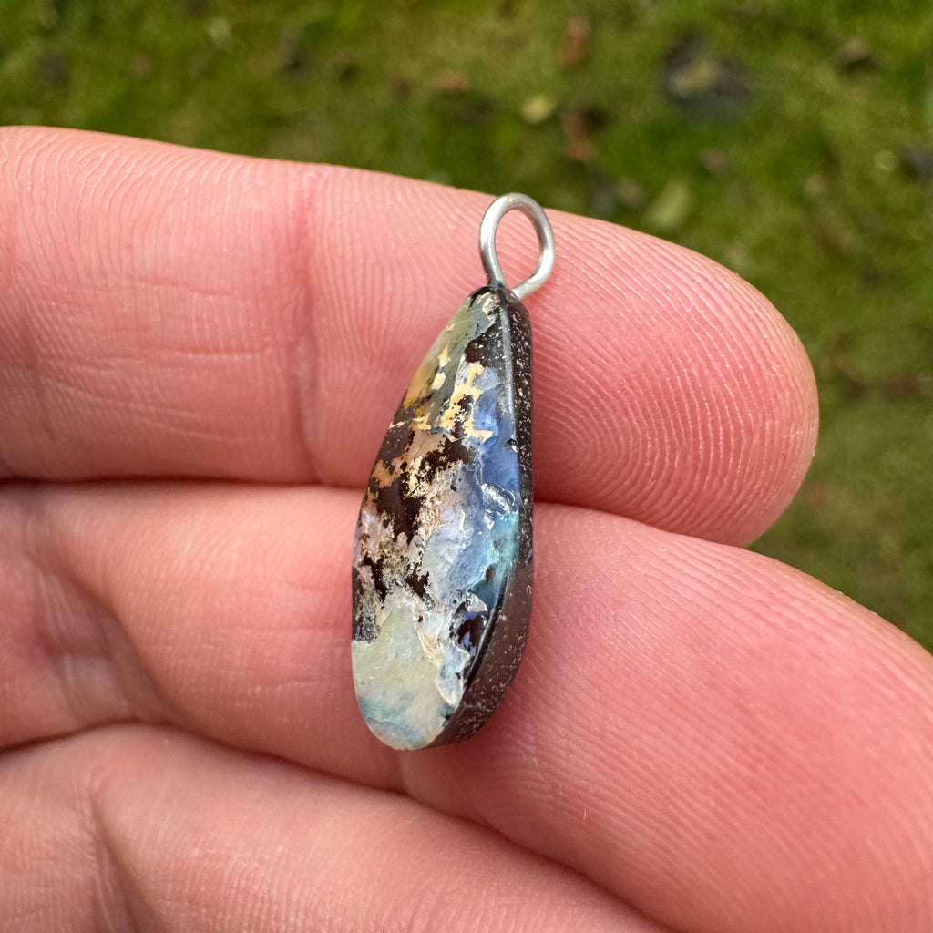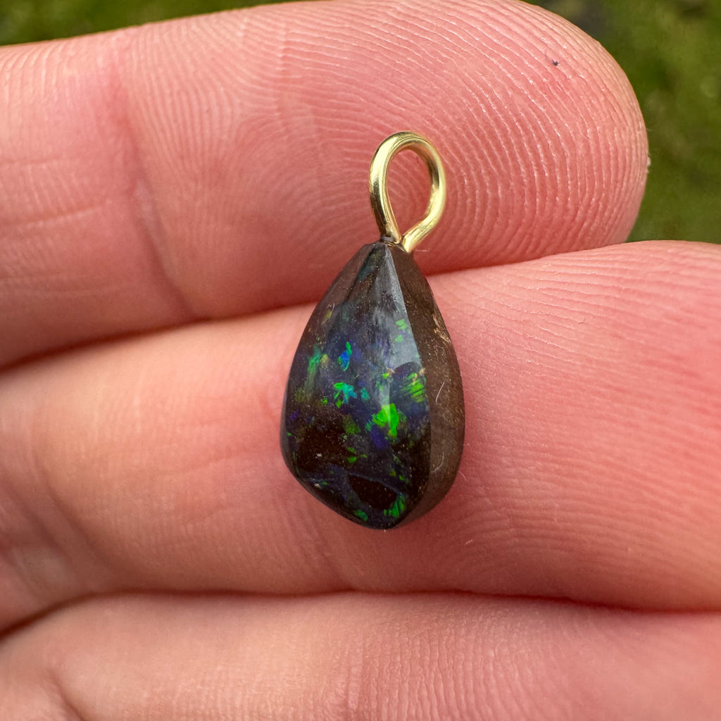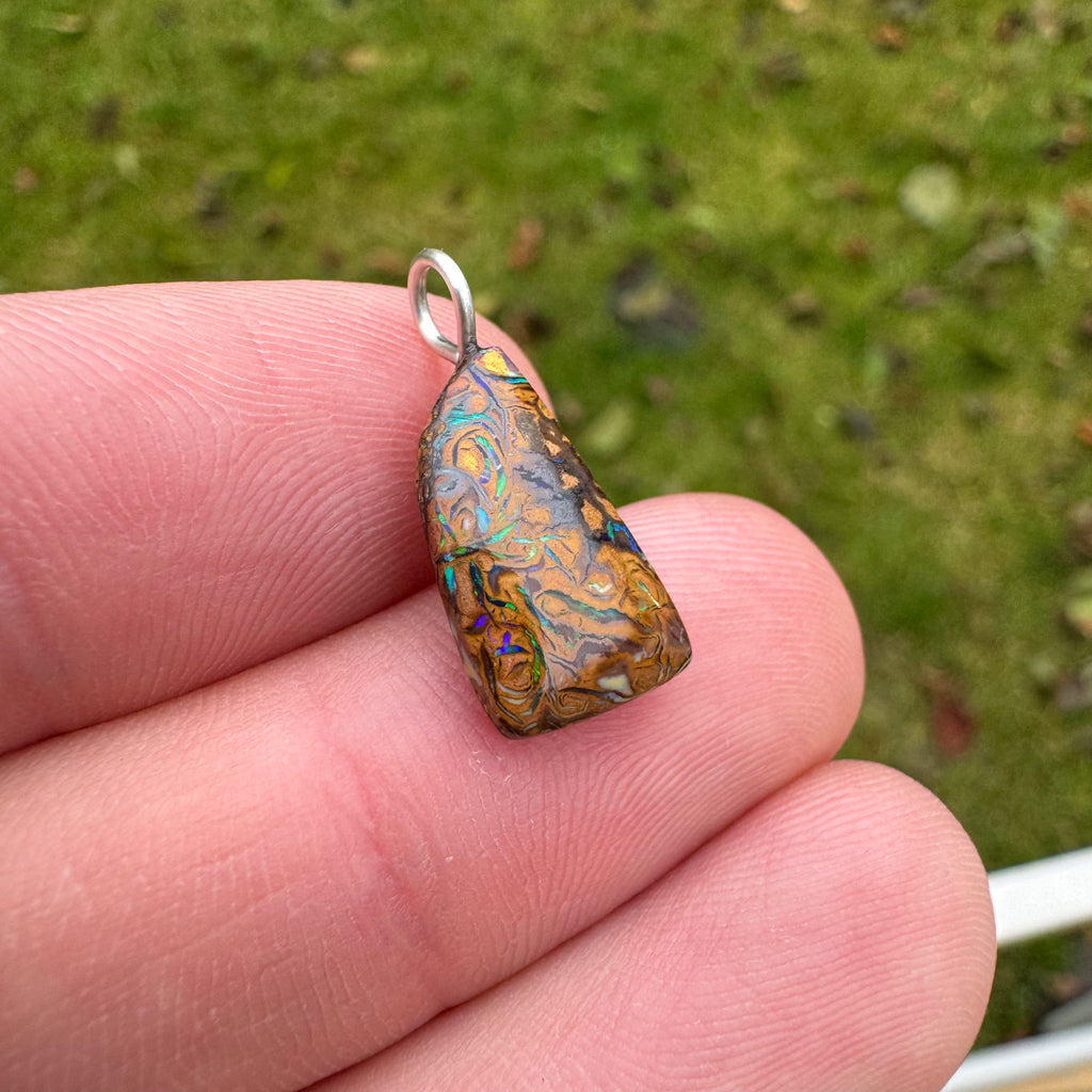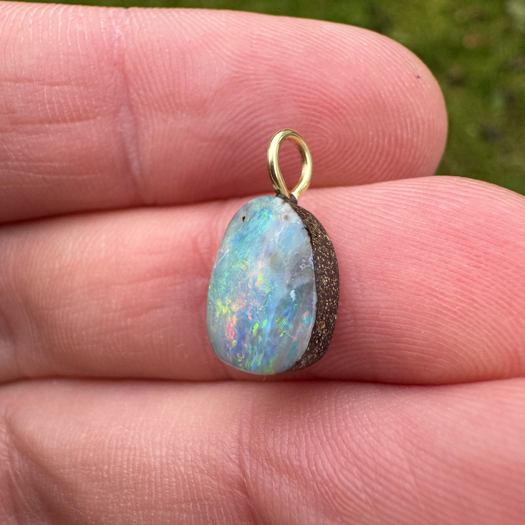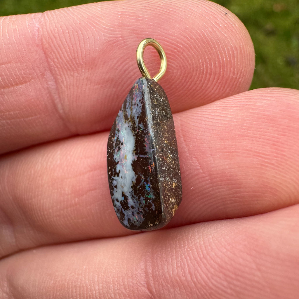 Une opale boulder est un type rare d'opale trouvée dans des formations de fer spécifiques (rochers) dans le Queensland, en Australie. Ils ont souvent des paillettes de différentes couleurs.