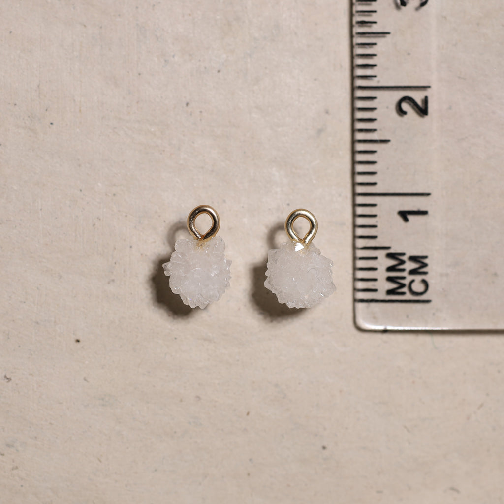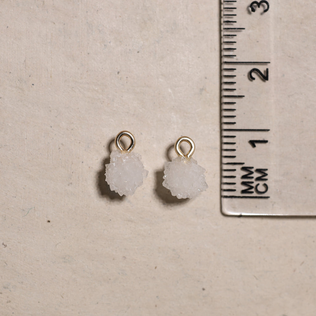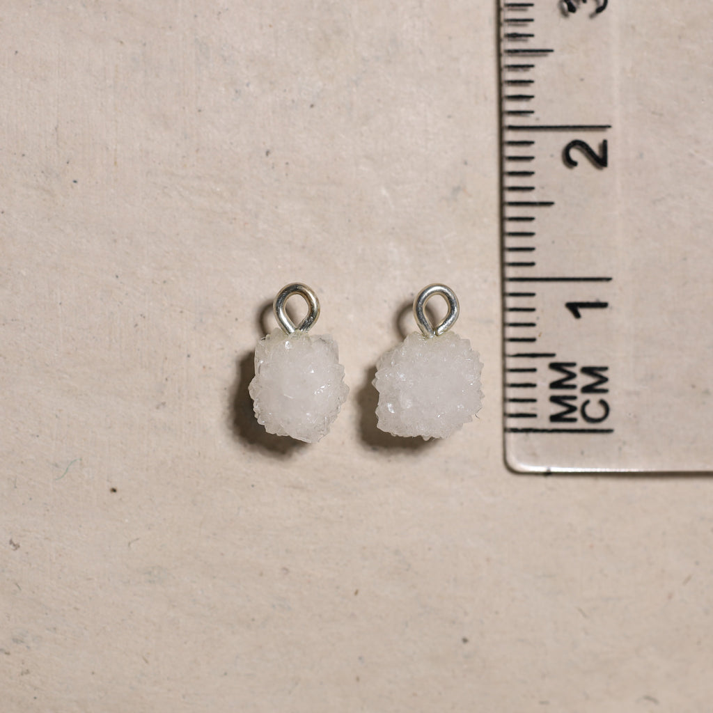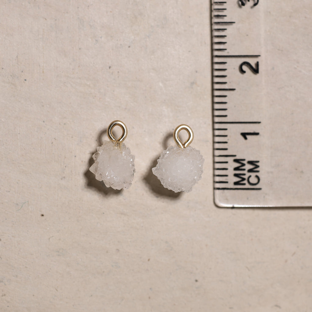 • Création : Nous utilisons ensuite une perceuse diamantée pour percer précisément un trou dans chaque pierre, après quoi nous y attachons un œillet. Cela vous permet de porter vos bijoux comme vous le souhaitez : sur un collier ou en boucle d'oreille.