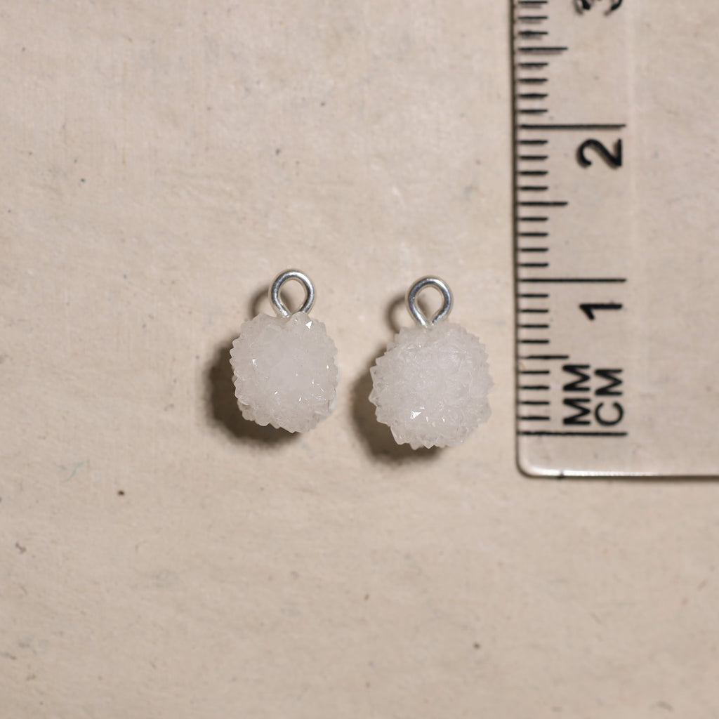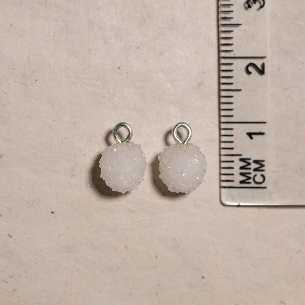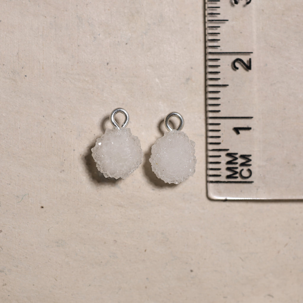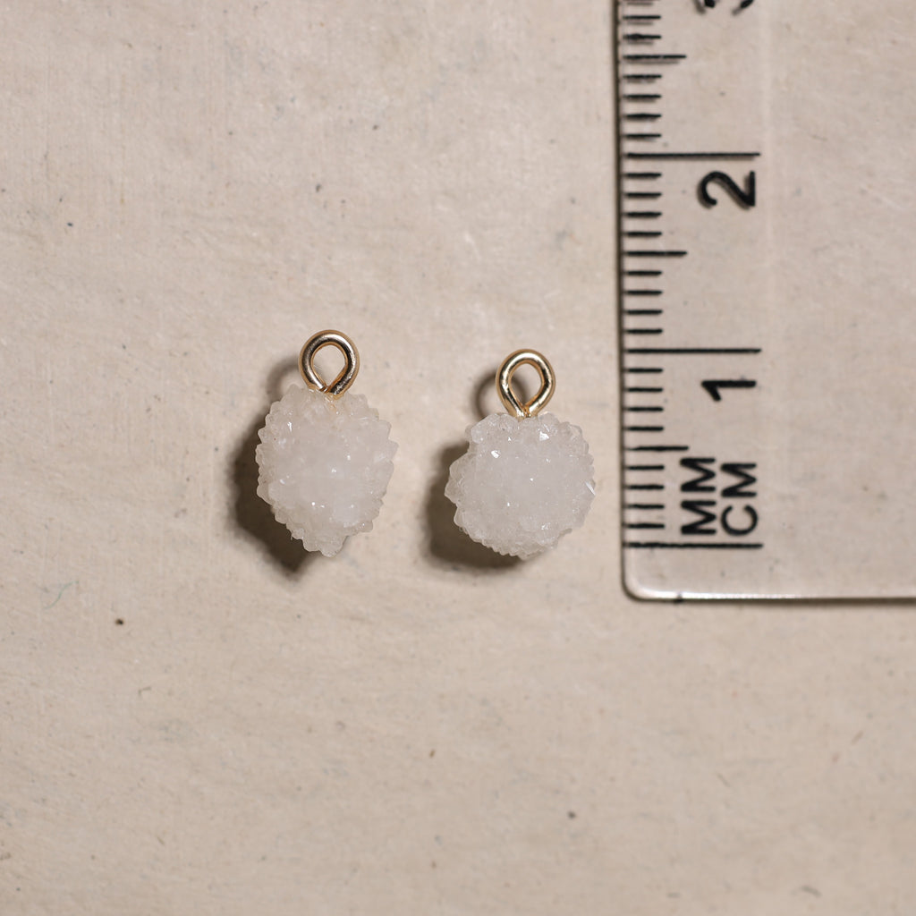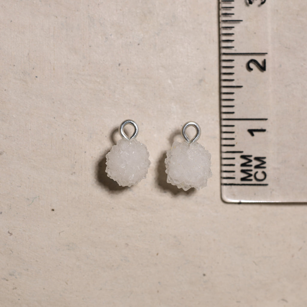 • Création : Nous utilisons ensuite une perceuse diamantée pour percer précisément un trou dans chaque pierre, après quoi nous y attachons un œillet. Cela vous permet de porter vos bijoux comme vous le souhaitez : sur un collier ou en boucle d'oreille.