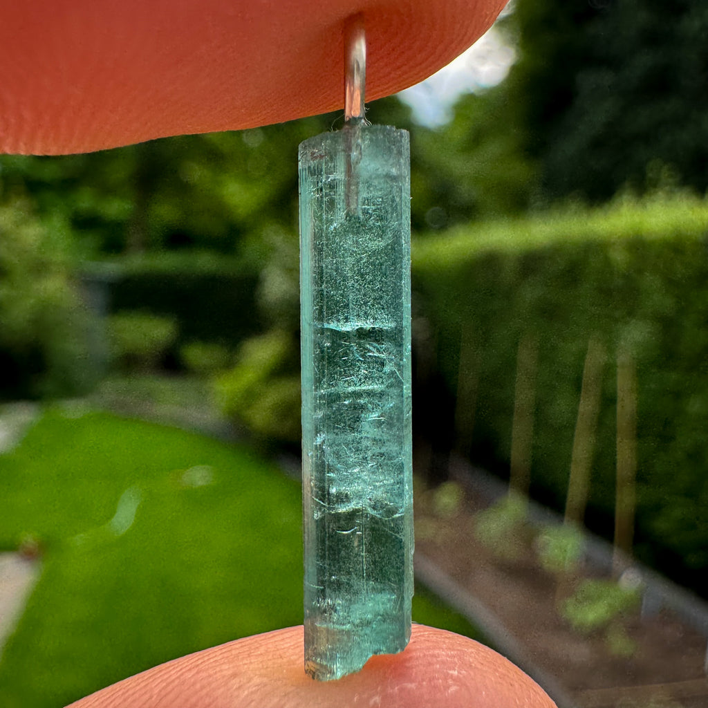 • Creatie: Vervolgens boren we met een diamantboor nauwkeurig een gaatje in elke steen, waarna we er een oogje aan vastmaken. Dit maakt het mogelijk om jouw sieraad te dragen zoals jij dat wilt - aan een ketting of als oorring.