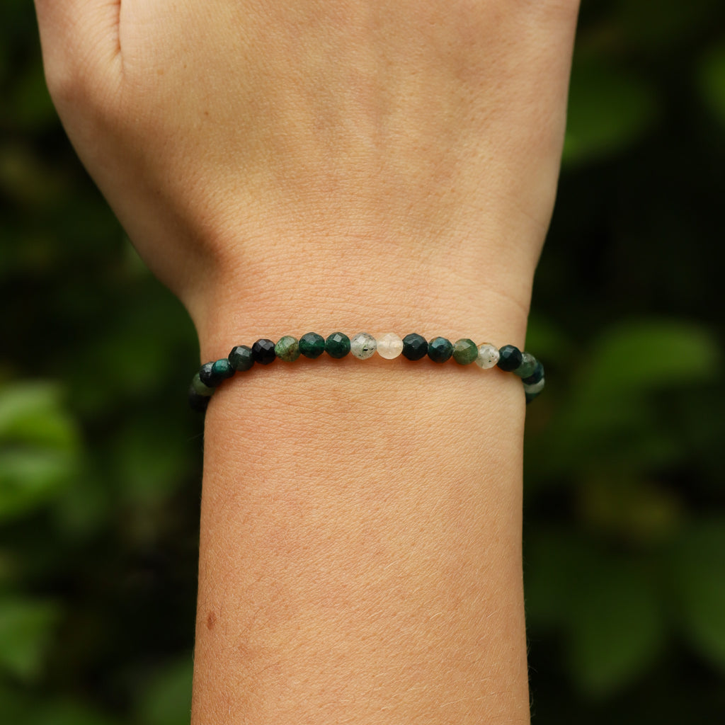 Mosagaat is een bijzondere steen die je verbindt met moeder Aarde en de natuur om je heen. Deze steen versterkt je contact met de natuurlijke wereld en bevordert een diep respect en liefde voor alles wat groeit en bloeit.