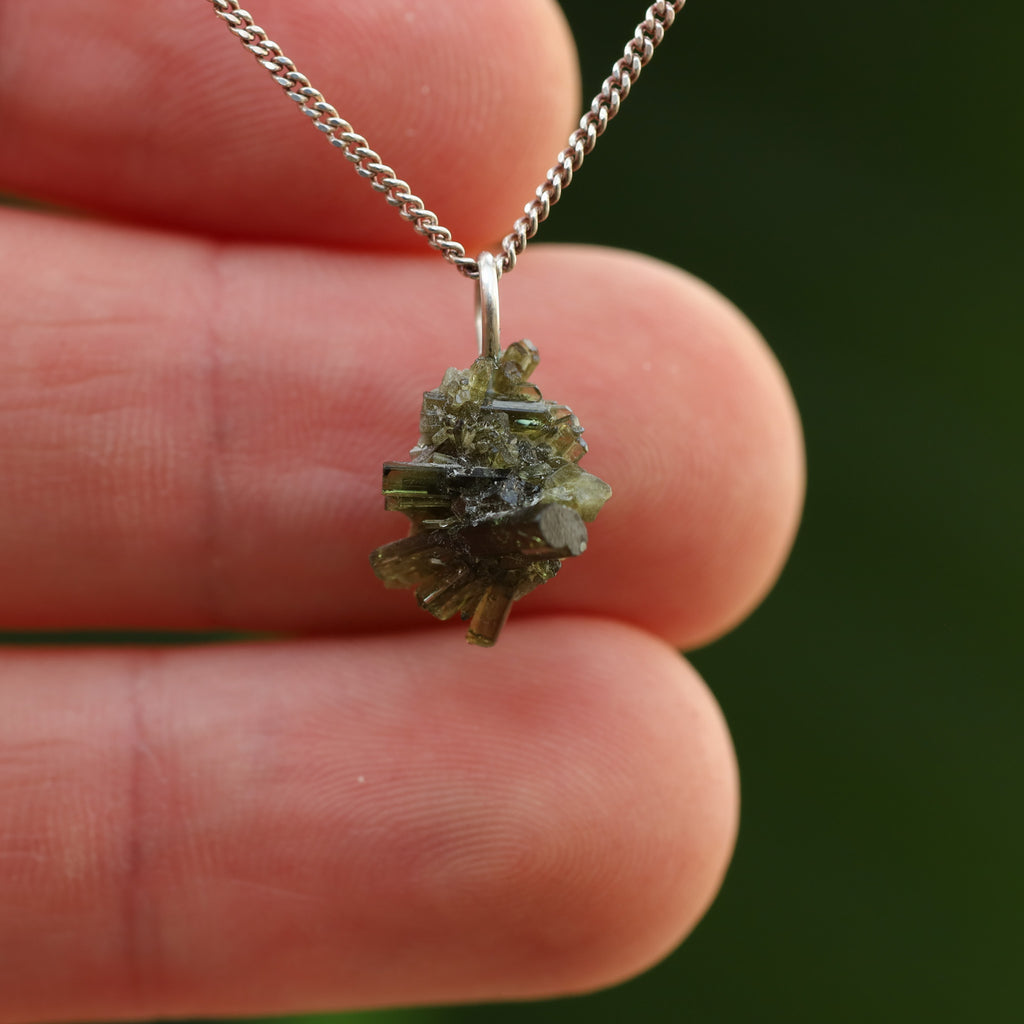 Vesuvianiet is een kristal dat zijn naam dankt aan de vulkaan de Vesuvius in Italië, waar de eerste vondsten zijn gedaan. Het mineraal komt voor in verschillende kleuren, waaronder groen, geel, bruin, violet en soms blauw. Onze groene (en 1 bruine) Vesuvianiet is gevonden in de regio Valle d’Aosta in Italië door een mineraloog die we hebben ontmoet tijdens onze inkoopreis.